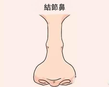 结节鼻的年寿骨比较凸起,并且向左右横张,从正面看就像鼻子打结了一样。结节鼻的名称也因此而来。长了这种鼻子的人,性格比较倔强,一生比较辛劳,但是收获很少,并且在中年时期,可能是事业失败,也可能是大的灾病或官非,有这种鼻子的人,尤其是女性,在婚姻方面很难幸福美满。