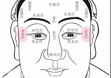 “夫妻宫”是中国相面学家对“鱼尾”(两个眼角)的另一个称呼,指从眉毛末端到太阳穴的皮肤。根据传统相面理论的分析,夫妻宫中有幸运痣的人在事业上和财富上都有很多机会。尤其是当这只幸运的鼹鼠长在合适的夫妇的宫殿里时,机会将是无限的。如果你在正确的时间抓住机会,你的生活将会变得丰富而昂贵!