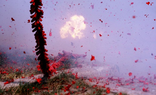 大年初一即新年的第一天,是新年中一切的开始,在这一天里所做的事情关乎着这一年的运气。因此在过初一这一天的时候,家家户户开门的第一件事就是燃放红爆竹,即做爆竹的纸必须是红色的,保证爆炸以后红的纸屑能够遍地铺满,爆竹声后,碎红满地,灿若云锦,称为“满堂红”,象征新年的日子红红火火。满院的爆竹碎红是不能扫的。俗传正月初一为扫帚生日,这一天不能动用扫帚,否则会扫走运气、破财,而把“扫帚星”引来,招致霉运。