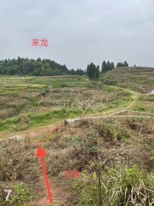 (一)、龙、穴、砂、水、向的结合天然,此墓地经测量立子山午向兼癸丁吉度分金,见图3。戌乾双亲来龙,见图7。正媾巽巳,反媾坤申,两水交汇,见图4、见图5。正所谓: